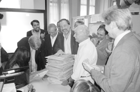 Recordemos que este es un nuevo partido político producto de un acuerdo entre el Partido Nacional y el Partido Colorado para presentar sus candidatos en las elecciones departamentales de 2015 en Montevideo. El principal objetivo de este acuerdo es cambiar Montevideo. El consejo directivo de este Partido de la Concertación está integrado por: Alberto Maschwitz (presidente), Julio Herrera (vicepresidente); Raquel Carzoglio, María Suárez de Lima, José Garchitorena, Antonio Mercader, Eugenio Baroffio y Fernando Calvete (vocales). A la hora de entregar las firmas en la Corte Electoral, Jorge Gandini comentó a los medios de comunicación allí apostados que «vamos a empezar a trabajar, a conversar, tenemos equipos ya trabajando que tendrán que empezar a reunirse. Creo que lo importante es que podamos conformar un programa común y luego cada uno con su estilo, con sus énfasis, tratar de cautivar a la mayor cantidad de montevideanos que quieren hacer un cambio en este departamento. Lo vamos a hacer bien y juntos». Gandini acuñó una frase que se repetía en los pasillos de la Corte Electoral: «El doble está, ahora buscamos un triple». Ambos candidatos están de acuerdo en que debe existir un tercer candidato bajo este lema. «Ojalá haya un tercer candidato que quiera sumarse a este gran proyecto y que aporte desde otra visión una posibilidad más para los montevideanos», expresó. El candidato del Partido Nacional resaltó que «hay que votar por el cambio, por otro modelo de gestión en Montevideo, ambos somos políticos trabajadores en el departamento, lo conocemos bien y yo creo que lo importante es, no lo que nos diferencia, sino lo que nos une. La gente encontrará con quién se siente más cómodo. Pero lo importante es que tengamos un programa. Debemos recordar que junto a la carta orgánica y a la declaración de principios, aprobamos en ambas convenciones unos lineamientos programáticos de diez puntos que ya son comunes y sobre esa base vamos a trabajar». En tanto, para el candidato Ney Castillo, es muy importante «concientizarnos de que el Partido de la Concertación es un hecho histórico para este país, y que tiene que ser el triunfador. Nos tenemos que apoyar mutuamente. Cada uno —como dijo Jorge— con su estilo buscará ganarle al otro, como es obvio, pero respetando las normas básicas de que somos los históricos primeros candidatos de este Partido», enfatizó. »Jorge tiene su perfil y yo tengo el mío; él tiene muchos años en la política y yo tengo muchos años en la vida social, no tenemos nada que vender», terminó diciendo el candidato del Partido Colorado. De esta manera se cumple un nuevo capítulo del proceso de negociación entre ambas fuerzas políticas, encabezado por los senadores Gustavo Penadés (Partido Nacional) y Ope Pasquet (Partido Colorado). || Karina Pistón. Prensa y comunicaciones MVD se puede. |