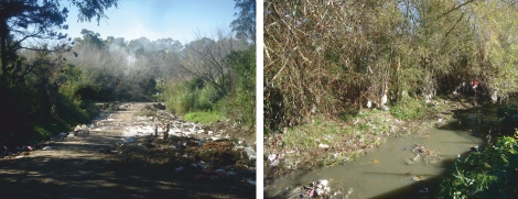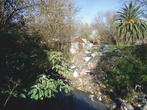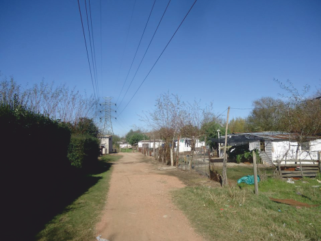 | Asentamiento de la calle Carve Al final de la calle Carve al norte nos encontramos con el arroyo Pantanoso. Allí se ha desarrollado un asentamiento justo bajo las torres de alta tensión donde viven muchas familias, que debido a la basura que se ha ido acumulando a lo largo del arroyo, con cada lluvia importante ven cómo se desborda el arroyo y el agua ingresa a sus hogares hasta varios centímetros de altura. Los vecinos formaron una cooperativa que construye elementos de hormigón, bancos, mesas, que se los comercializaban a empresas del Estado, pero ya hace como un año no consiguen colocar sus productos. Como en tantos otros puntos de la ciudad, estos vecinos esperan su oportunidad para ser realojados. |