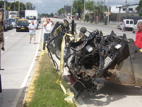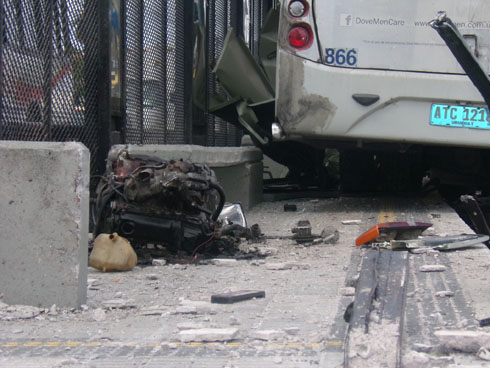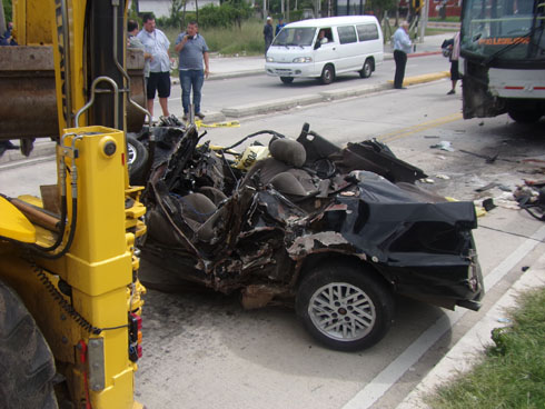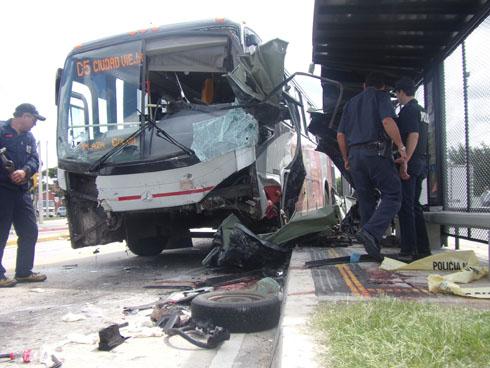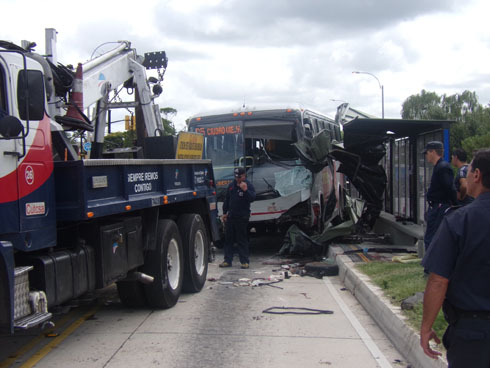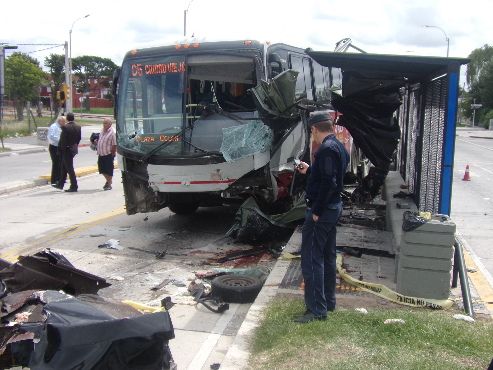 Trágico accidente ocurrido en la mañana del martes 25 de febrero del 2014, con consecuencias fatales. Se cobró una vida y hay una persona en muy grave estado. ¿Quién tuvo la culpa?, es tarde para saberlo. El auto particular, un Ford Escort, venía por Av. Garzon pretendiendo doblar a su izquierda rumbo a Bvar. José Batlle y Ordóñez al Centro. Lo sorprendió el cambio de luces, al momento de cruzar o al iniciar el cruce, nunca lo sabremos; el bus de Cutcsa de recorrido D5 venía por el corredor Garzón, dentro del carril respectivo, se le pone en verde la luz o lo sorprende el cambio, su velocidad, impresión personal, sería más de 90 kilómetros por hora, de otra forma no es explicable el arrastre de más de cuarenta metros, fácilmente cuarenta metros, pues cruzó al auto todo Propios y arrasó toda la parada de enfrente, que Dios así lo quiso, no tenía ninguna persona esperando bus hacia afuera, ni había otro bus dentro del corredor, de lo contrario estaríamos hablando de muy nefastas cifras de muertos. || |